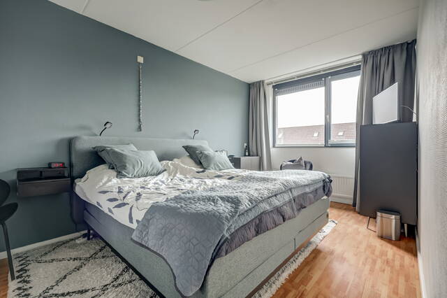 Op de eerste verdieping bevinden zich drie ruime slaapkamers en een badkamer. De slaapkamer (ca. 13 m²) aan de achterzijde beschikt over een vaste schuifkastenwand. De andere slaapkamer (ca. 7 m²) aan de achterzijde heeft een heerlijke sauna en extra vaste kastruimte. De slaapkamer (ca. 12 m²) aan de voorzijde is ook voorzien van een vaste inbouwkast. De slaapkamers op de eerste verdieping zijn afgewerkt met een laminaatvloer.