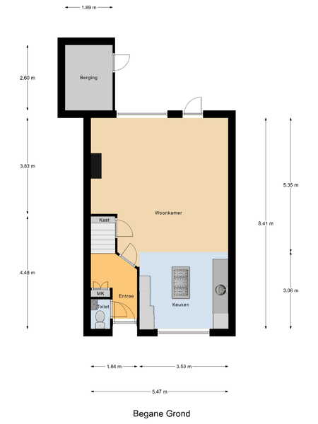Via de voortuin stap je achter de voordeur binnen in de hal met meterkast en toiletruimte. Je hangt je jas op en loopt de doorzonwoonkamer met open keuken in. Wat een fijne ruimte! Lekker licht en met circa 40 m² ook nog eens heerlijk ruim. In de woonkamer is voldoende plek voor een grote zithoek én een gezellige eethoek. Onder de trap vind je de welbekende trapkast, waar je altijd verbazingwekkend veel in kwijt kunt.