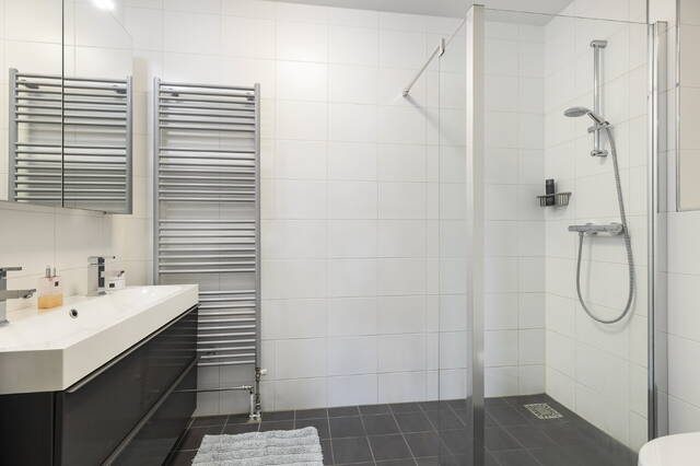 - Stijlvolle badkamer met inloopdouche en dubbel wastafelmeubel