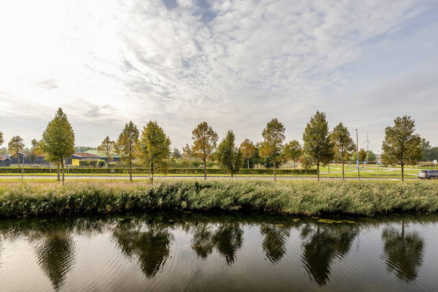 Het riante terras aan de achterzijde vormt het absolute hoogtepunt van deze woning: volledig betegeld, met een breed elektrisch bedienbaar zonnescherm en vrij uitzicht over de omgeving. Hier kunt u in alle rust genieten van de zon en het polderlandschap.