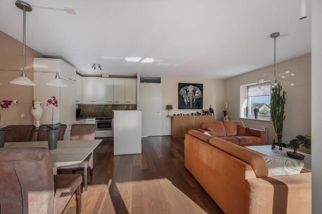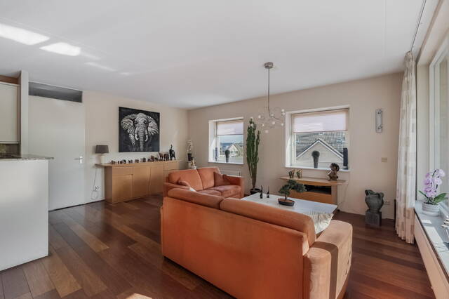 Royale lichte woonkamer (ca. 39 m2) voorzien van een laminaatvloer. Door middel van een balkondeur met schuifhor heeft u toegang tot het zonnige balkon. De grote raampartij zorgt voor volop aangenaam daglicht en een natuurlijke verbinding met het balkon. De woonkamer biedt verder voldoende ruimte voor een eethoek bij de open keuken.