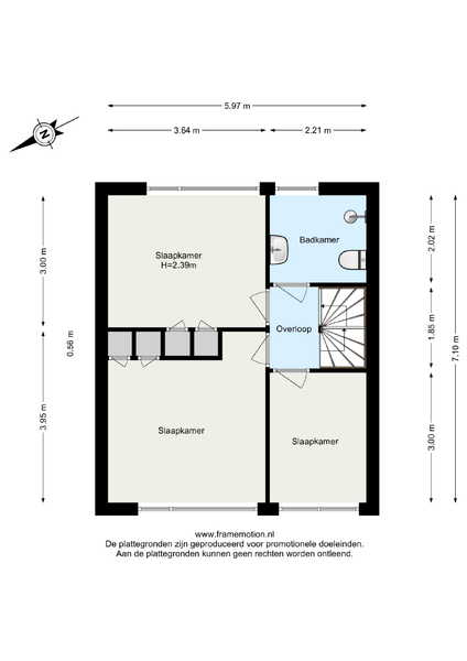 De overloop biedt toegang tot drie slaapkamers en de badkamer.