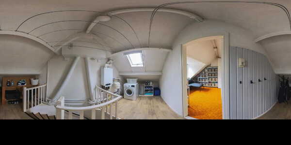 Op de tweede verdieping bevindt zich de overloop met aansluitingen voor wasmachine en droger en de CV-opstelling. Een kunststof Velux dakraam zorgt hier voor natuurlijke lichtinval.