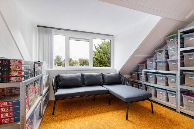 De vierde slaapkamer ligt aan de achterzijde en is voorzien van een dakkapel, waardoor de ruimte groter en lichter aanvoelt. Aan de voorzijde bevindt zich bovendien handige bergruimte.