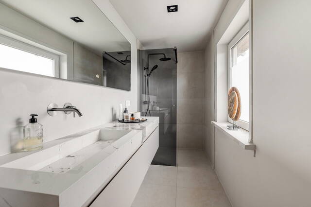 Naast 6 eigendom zonnepanelen, zorgt de elektrische vloerverwarming in de badkamer en airco in woonkamer en ouderslaapkamer voor optimaal comfort.