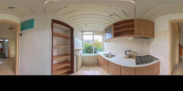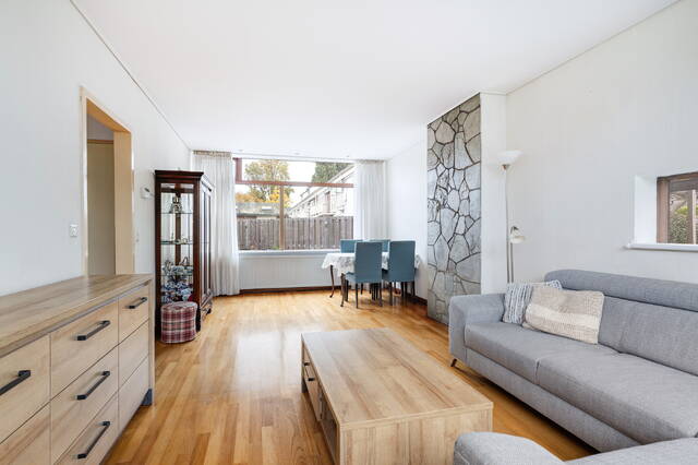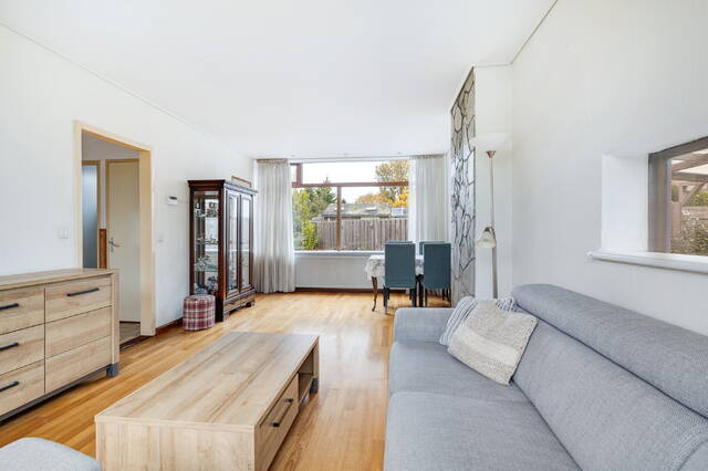 De doorzonwoonkamer is heel licht dankzij de grote ramen aan zowel de voor- als achterzijde. Hier ervaart u direct de prettige sfeer van deze woning. De kamer is voorzien van een parketvloer.
