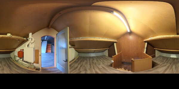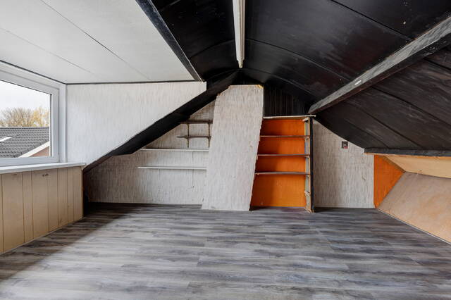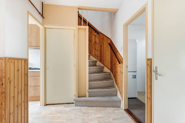 Via de vaste trap bereikt u de tweede verdieping met overloop, CV-opstelling en bergruimte achter de knieschotten.