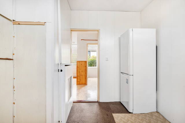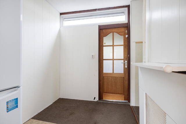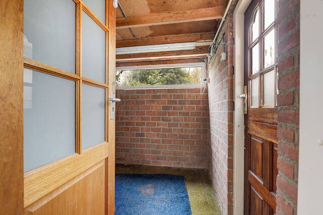 Via de hal komt u in de bijkeuken, met extra bergruimte en ruimte voor bijvoorbeeld een tweede koelkast. Vanuit hier bereikt u de aangebouwde berging, ideaal voor fietsen, tuinmeubilair of gereedschap, en via de berging loopt u zo de achtertuin in.