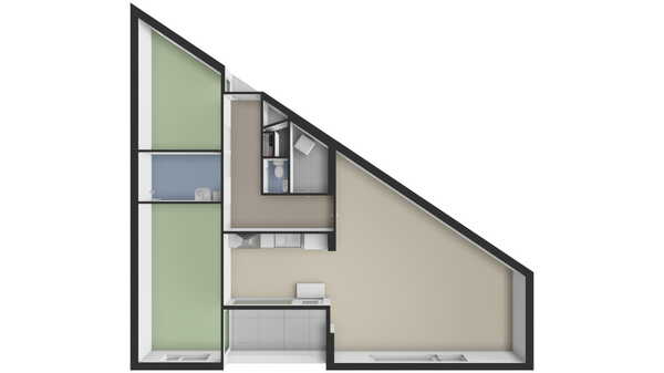 - Balkon gelegen op het westen en bereikbaar via de slaapkamer en via de keuken;