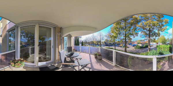Het terras ligt op het westen en biedt een prachtig uitzicht over de groenstrook en het water voor het complex. Dankzij de ligging op de hoek heeft u een vrij uitzicht over de omgeving. Vanuit zowel de woonkamer als de hoofdslaapkamer is het terras direct toegankelijk via schuifpuien.