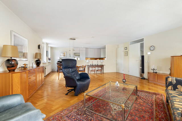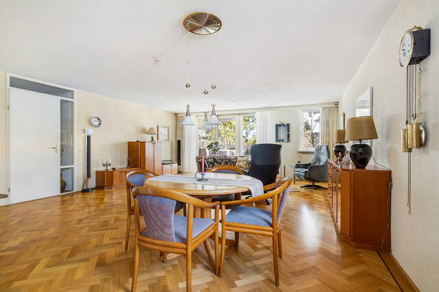 Vrijwel het gehele appartement is afgewerkt met een prachtige visgraat parketvloer met wengé bies, wat het geheel een luxe en warme uitstraling geeft.