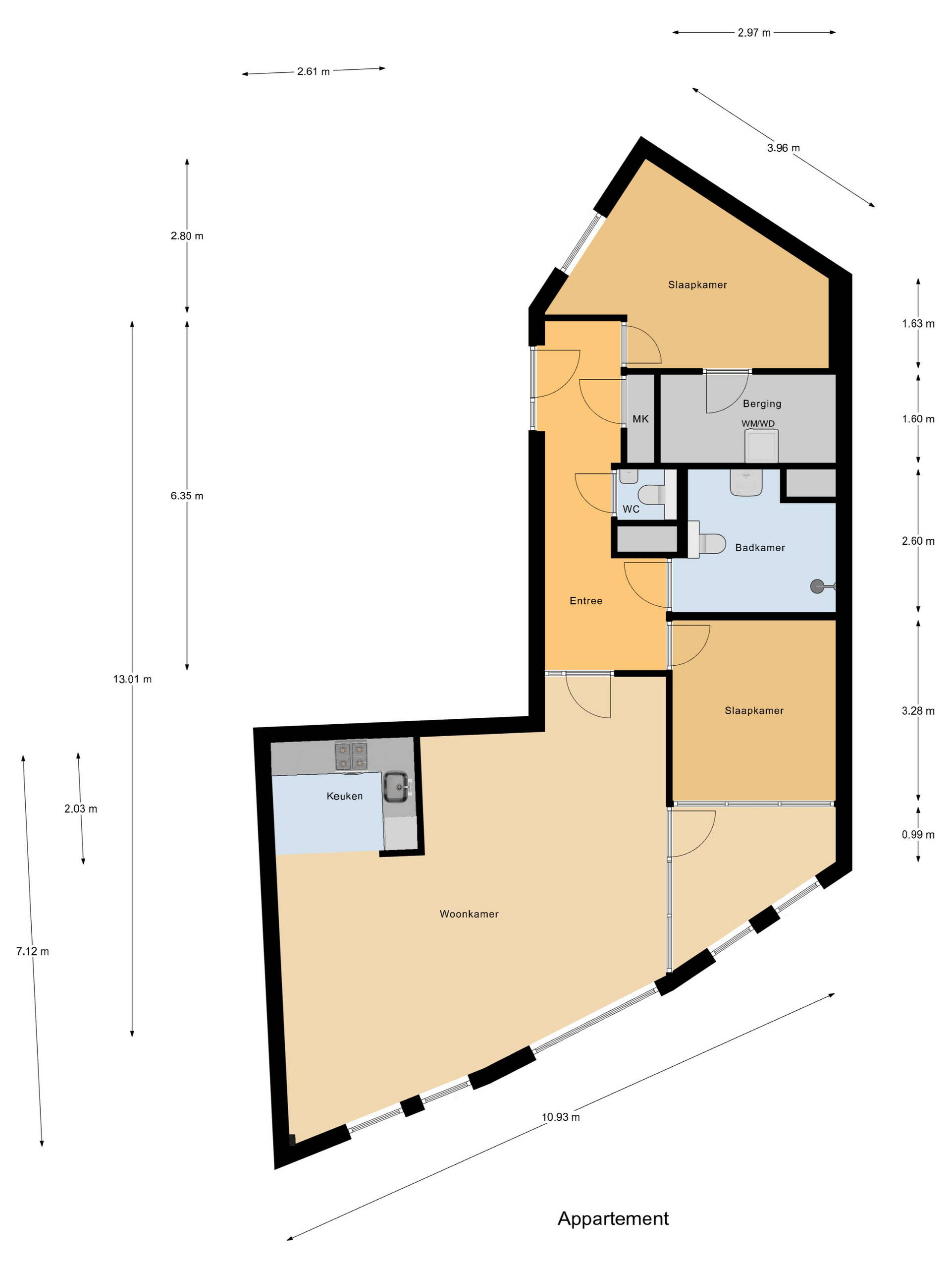101 m2 3 kamers 2 slaapkamers