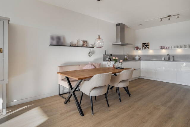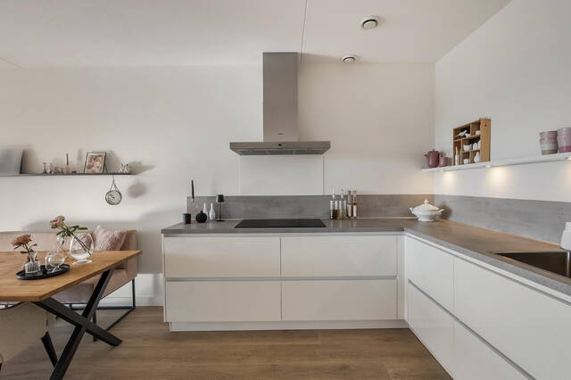 De luxe woonkeuken is een echte eyecatcher: modern, ruim en volledig uitgerust met hoogwaardige inbouwapparatuur, waaronder een combi-oven, koel-vriescombinatie, vaatwasser, 4-pits inductiekookplaat met warmhoudfunctie, RVS-afzuigkap én een Quooker. Hier wordt koken een plezier!