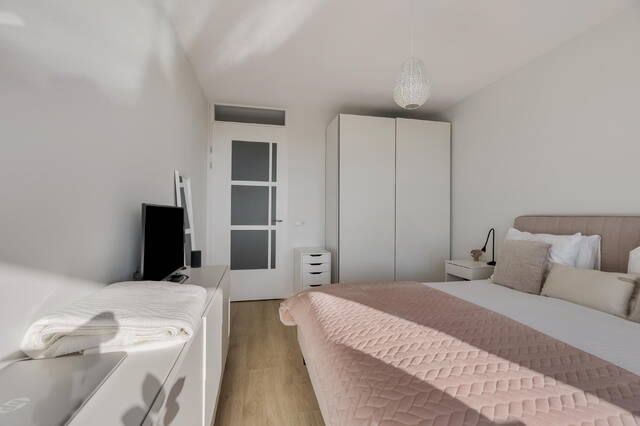 De woning beschikt over twee ruime slaapkamers, waarvan de grootste direct toegang biedt tot het royale balkon van 15 m² op het zuiden. Dit terras is een heerlijke buitenruimte met volop privacy, waar je van ’s ochtends tot ’s avonds kunt genieten van zon, uitzicht en rust.