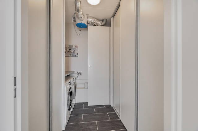 Verder is er een grote inpandige berging met aansluiting voor de wasmachine en CV-installatie, evenals een praktische schuifkastenwand voor extra opbergruimte.