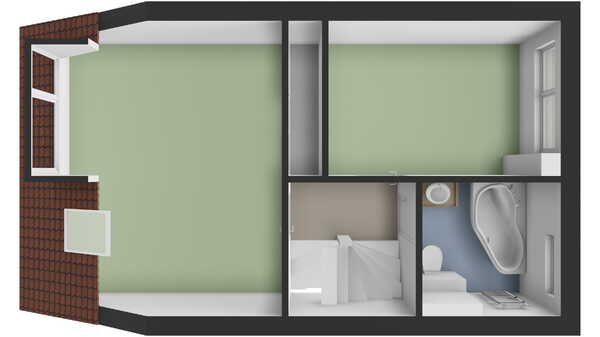 Slaapkamer 3 (ca. 11 m2) beschikt over een kunststof dakkapel met elektrisch bedienbaar rolluik en hor, een Velux dakraam met verduisterend gordijn, een lichte laminaatvloer en bergruimte achter het knieschot aan beide kanten. Deze slaapkamer is verrassend ruimtelijk dankzij de dakkapel en het dakraam, waardoor er natuurlijke lichtinval is en de ruimte optimaal wordt benut.