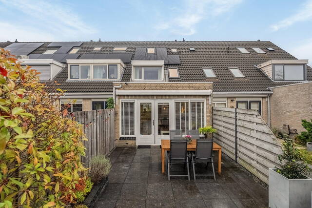 Deze moderne en goed onderhouden gezinswoning met energielabel A ligt in de rustige, kindvriendelijke wijk Dorpzicht en biedt alles wat u zoekt in een comfortabel en duurzaam thuis. Dankzij de 6 zonnepanelen woont u hier met uw gezin niet alleen stijlvol, maar ook energiezuinig. De uitgebouwde woonkamer is voorzien van vloerverwarming en grote raampartijen die zorgen voor een aangename, lichte leefruimte. Met de openslaande deuren open vloeien binnen en buiten letterlijk in elkaar over. Aan de voorzijde van de woning bevindt zich de open keuken, modern uitgevoerd en uitgerust met inbouwapparatuur om goed te kunnen koken. Op de eerste verdieping bevinden zich twee goed bemeten slaapkamers, allemaal voorzien van rolluiken, en een moderne badkamer met een eigentijdse uitstraling. De slaapkamer op de tweede verdieping is verrassend ruimtelijk dankzij de dakkapel en het dakraam, waardoor er veel lichtinval is en de ruimte optimaal wordt benut. De achtertuin op het zonnige zuidswesten is verzorgd aangelegd en biedt volop privacy, met een berging en achterom. Hier kun je heerlijk genieten van de middag- en avondzon. Kortom: een comfortabele, energiezuinige en instapklare gezinswoning waar aan alles is gedacht. De woning is klaar voor een nieuwe bewoner die hier met veel plezier de volgende hoofdstukken wil schrijven.