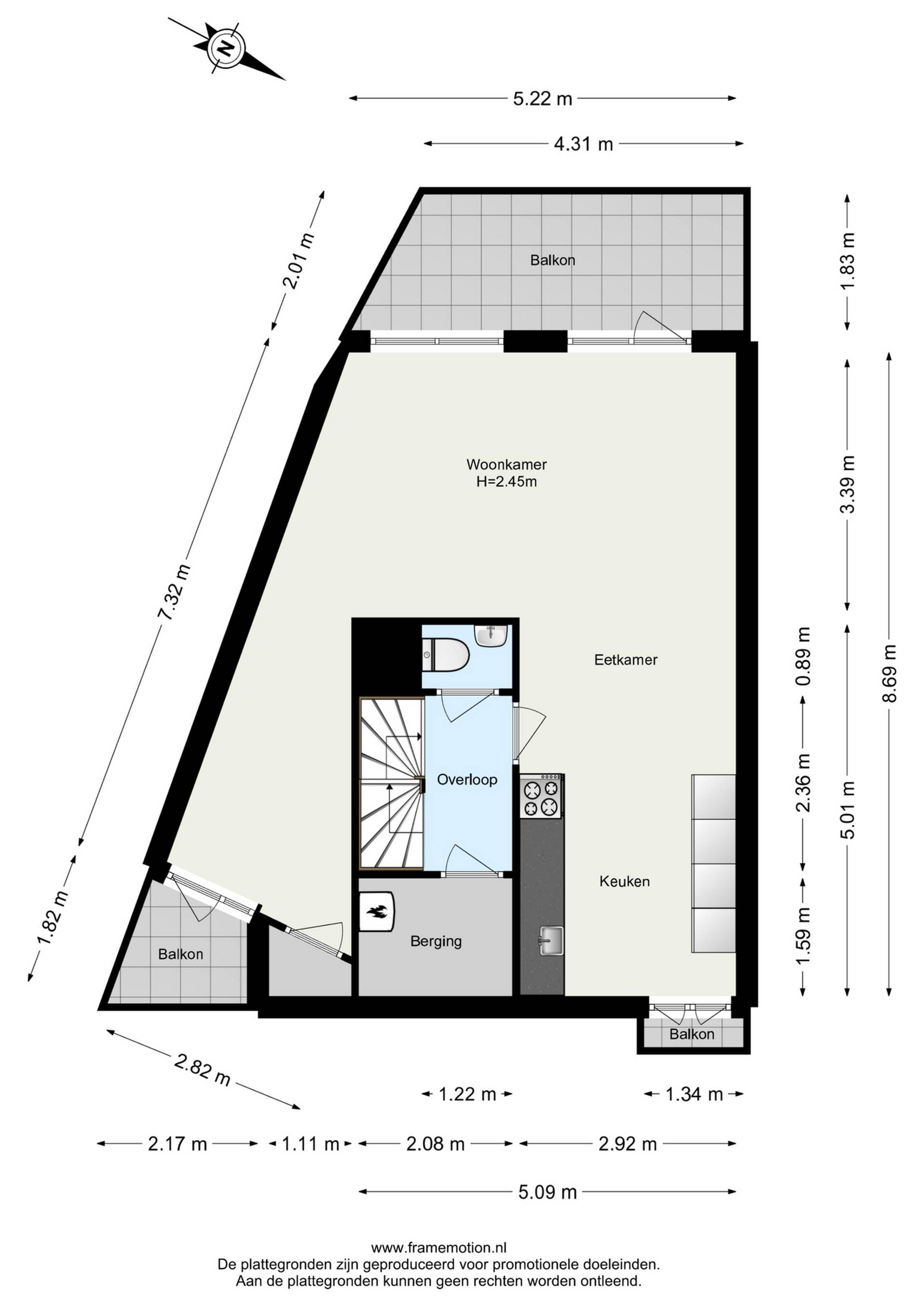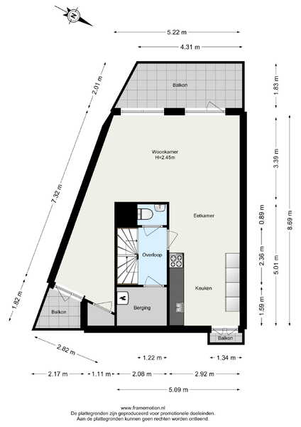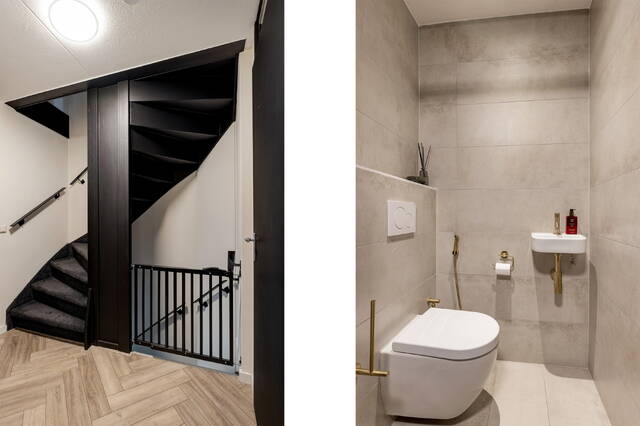 De verdiepingen zijn voorzien van moderne zwarte stalen trapleuningen wat het geheel een eigentijdse uitstraling geeft.