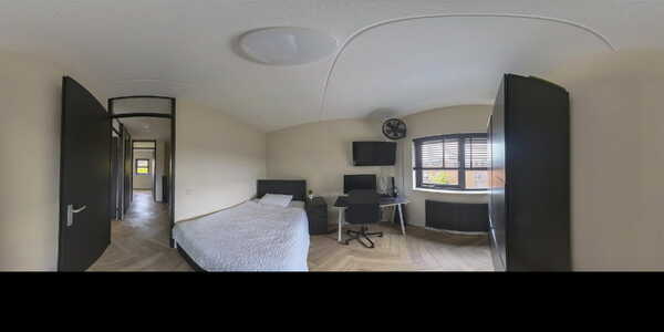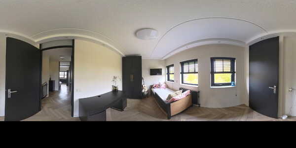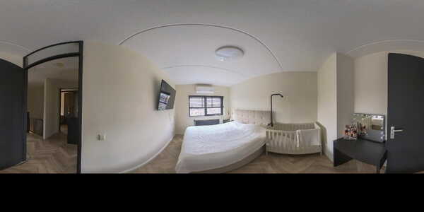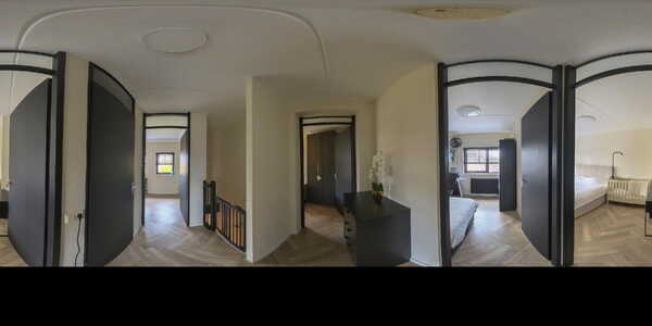 Ook op deze verdieping ligt een visgraat PVC-vloer en zijn alle wanden strak gestukt.