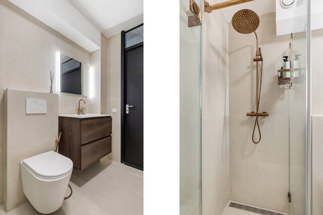 - Geheel betegeld in beige tinten en voorzien van: