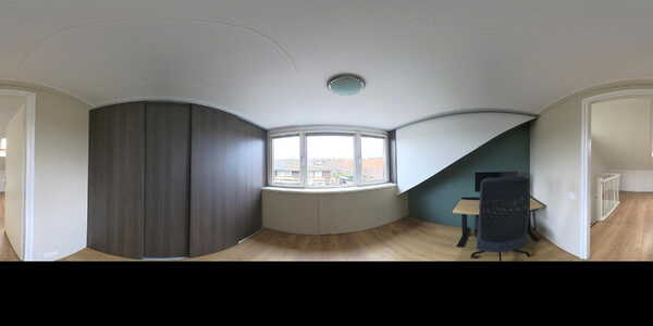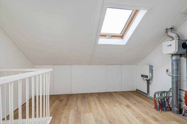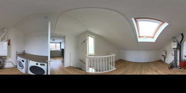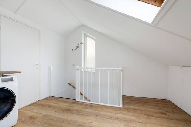 Op de tweede verdieping bevindt zich een ruime overloop met aansluiting voor wasmachine en droger, de CV- en MV-opstelling en de omvormer van de zonnepanelen. De overloop is voorzien van een dakraam voor natuurlijke lichtinval.