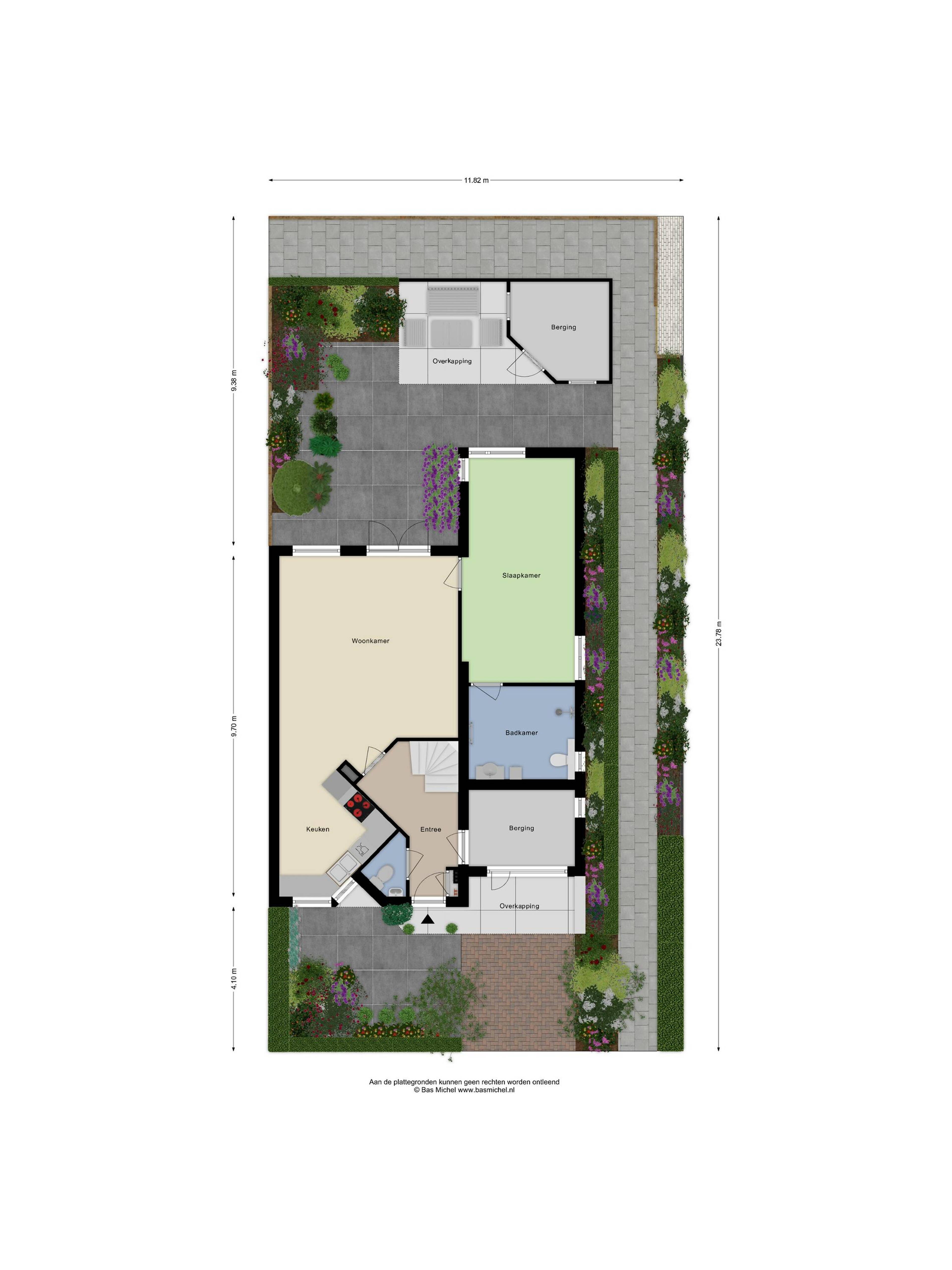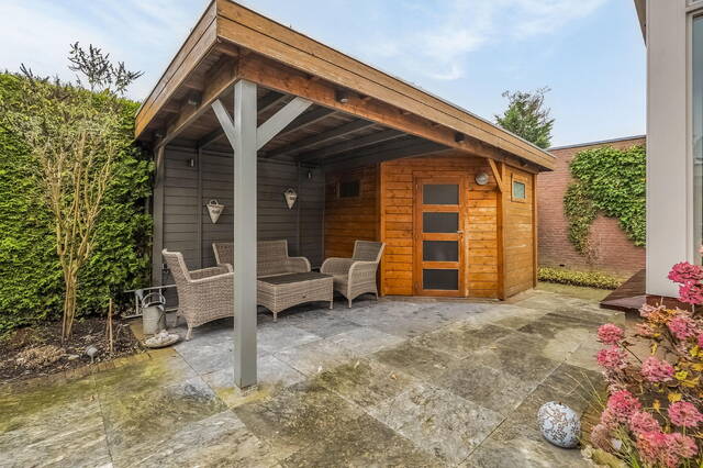De tuin is gelegen op het oosten en biedt volop mogelijkheden om te genieten. De tuin beschikt over een achterom, een houten berging met overkapping, een buitenkraan en een zonnescherm. Door de hoekligging geniet u van extra privacy en ruimte.