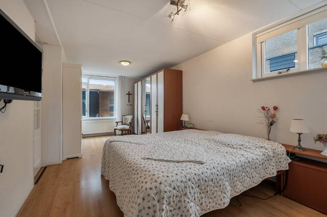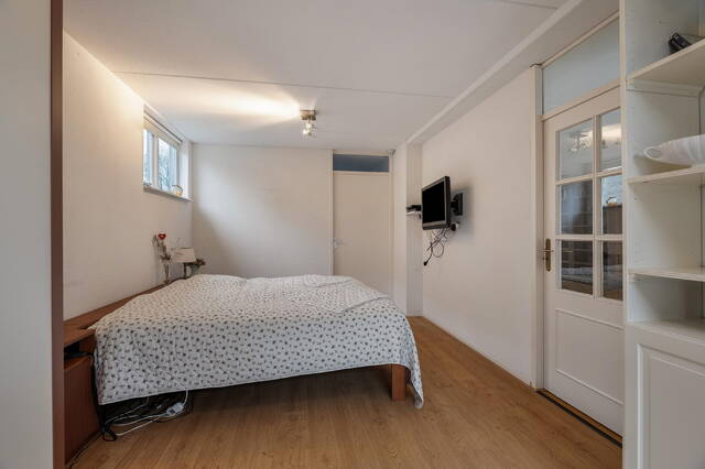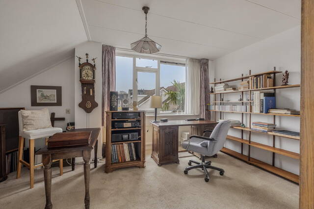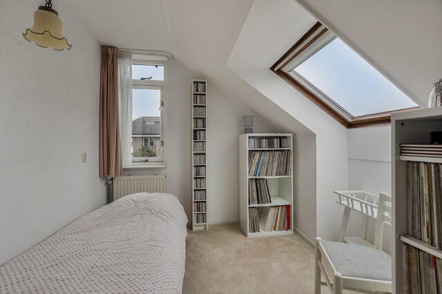 De slaapkamer aan de voorzijde strekt zich uit over de volledige breedte van de woning en is dankzij de grote raampartijen heerlijk licht. Aan de achterzijde bevinden zich twee slaapkamers, waarvan één is voorzien van een extra dakraam. Vanuit de andere 3e slaapkamer is de ruime vliering bereikbaar, waar zich tevens de opstelplaats van de cv-ketel bevindt en volop bergruimte aanwezig is.