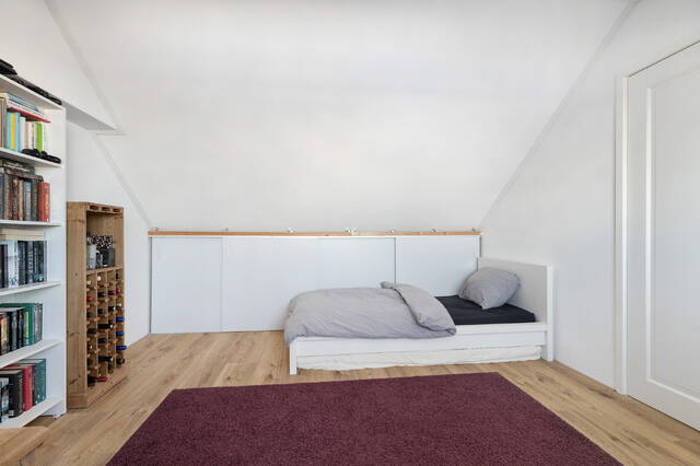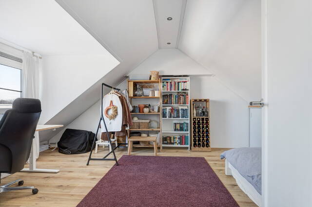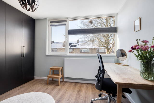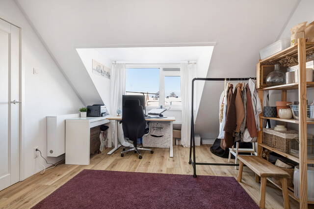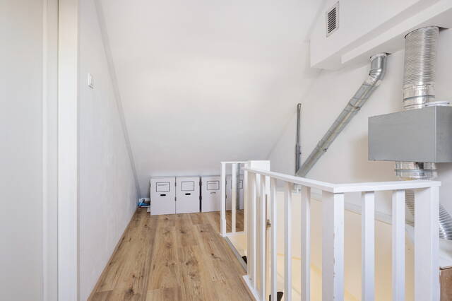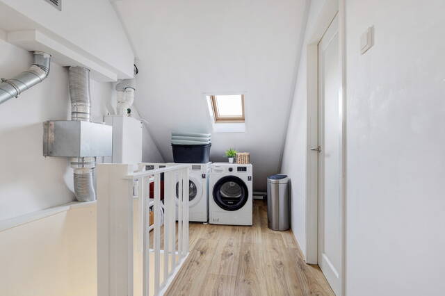 Op de voorzolder vindt u de aansluitingen voor wasmachine en droger, de CV-opstelling (2021) en de ventilatie-unit voor de keuken — extra stil in gebruik. Er is een Velux dakraam aan de achterzijde en toegang tot slaapkamer 4 met dakkapel aan de achterzijde. Over de gehele verdieping ligt een laminaatvloer.