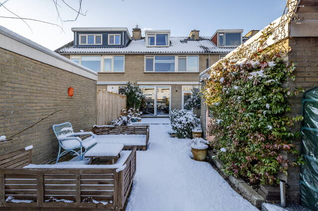 De achtertuin is sfeervol ingericht met echt gras, sierbestrating en sierbeplanting. Een elektrisch zonnescherm met sensor zorgt voor comfort op zonnige dagen. Vanuit de tuin bereikt u zowel de stenen berging als de stenen garage, die tevens bereikbaar is vanaf de achtergelegen parkeerplaats. De tuin ligt gunstig op het oosten, waardoor u volop ochtend- en vroege middagzon heeft.