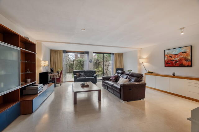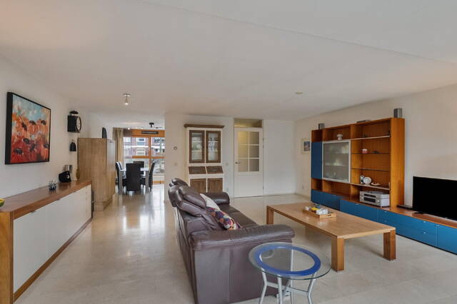 Uitgebouwde tuingerichte woonkamer (ca. 39 m2) voorzien van een lichte marmeren tegelvloer met vloerverwarming en grote raampartijen die zorgen voor een lichte leefruimte. De vloerverwarming op de begane grond zorgt bovendien voor een aangenaam binnenklimaat, het hele jaar door. Middels een grote schuifpui heeft u toegang tot de achtertuin. Met de schuifpui open vloeien binnen en buiten letterlijk in elkaar over.