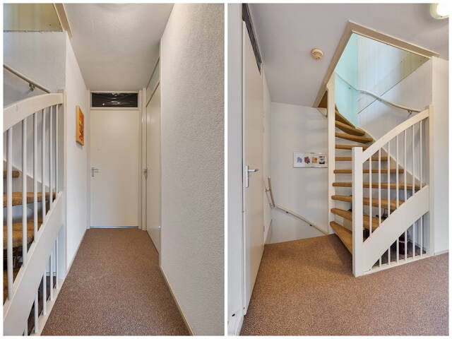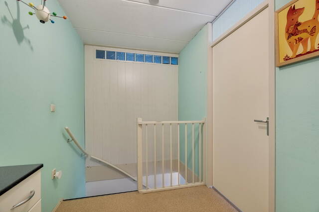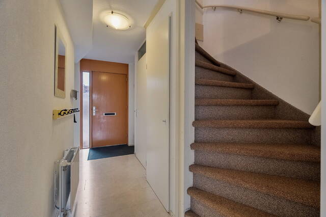 Ruime overloop met trap naar de 2e verdieping en toegang tot alle vertrekken.