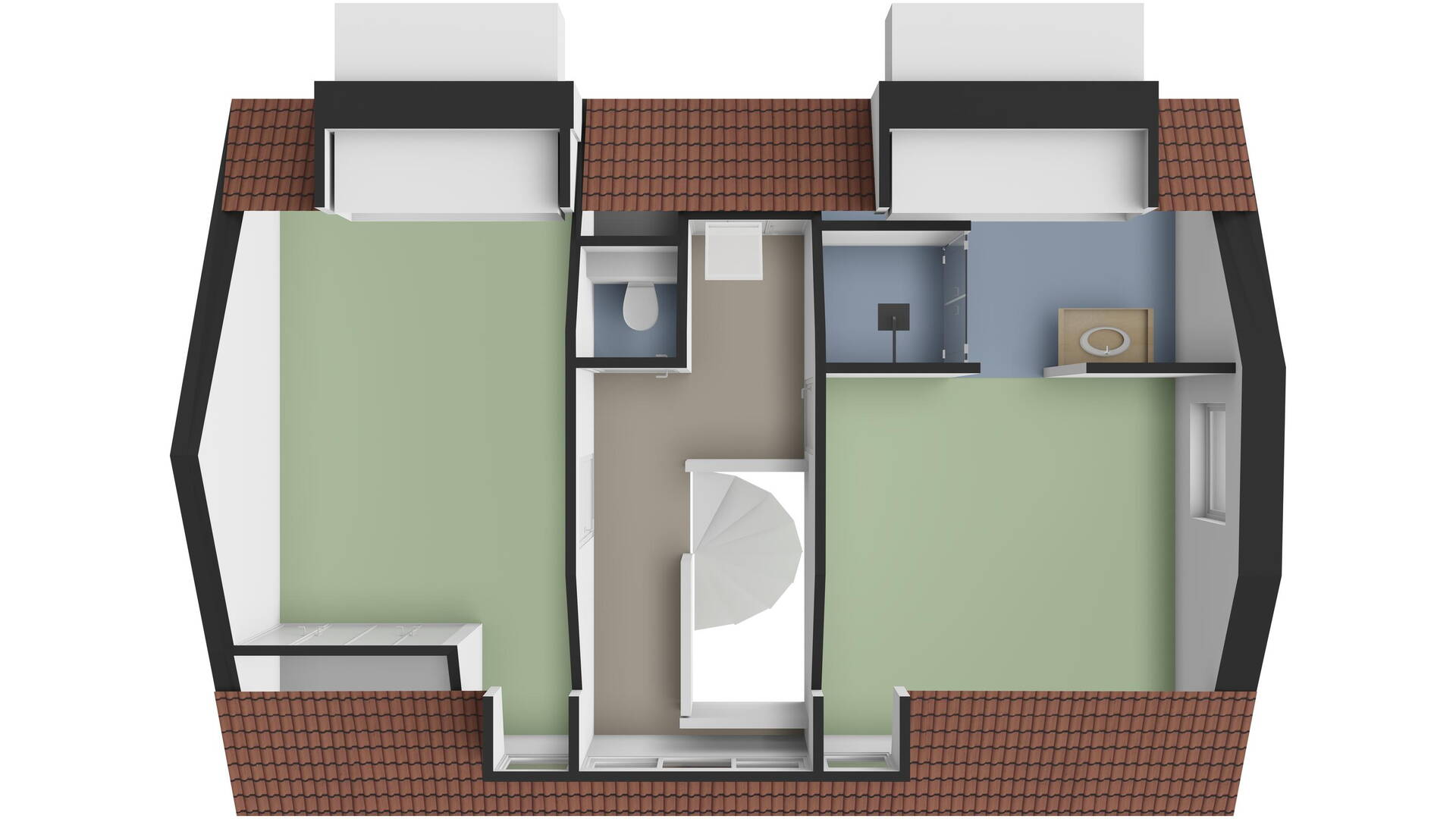- Eerste verdieping met twee dakkapellen aan de achterzijde en een dakkapel aan de voorzijde van de woning;