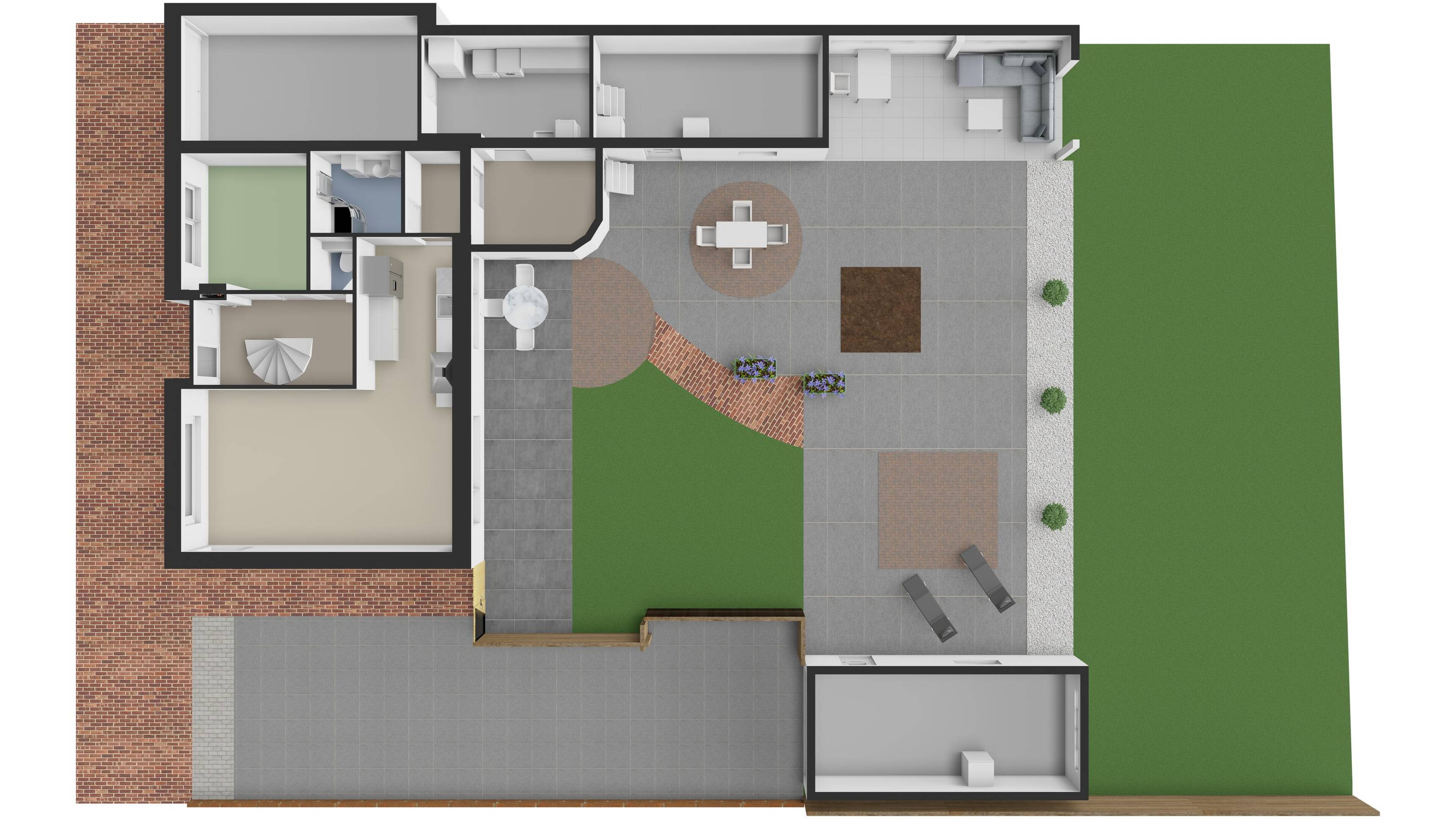 - Royale achtertuin met verschillende mogelijkheden waar u heerlijk kunt genieten en met voldoende grond;