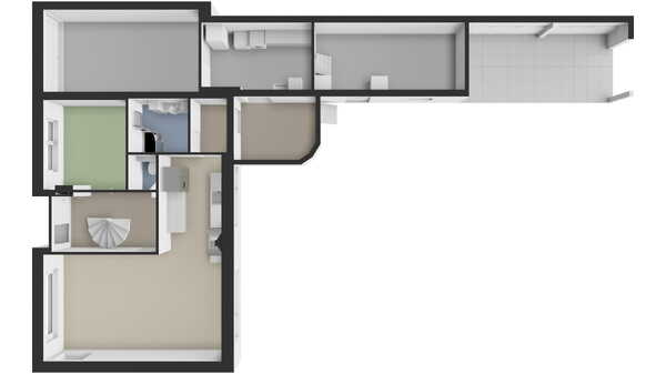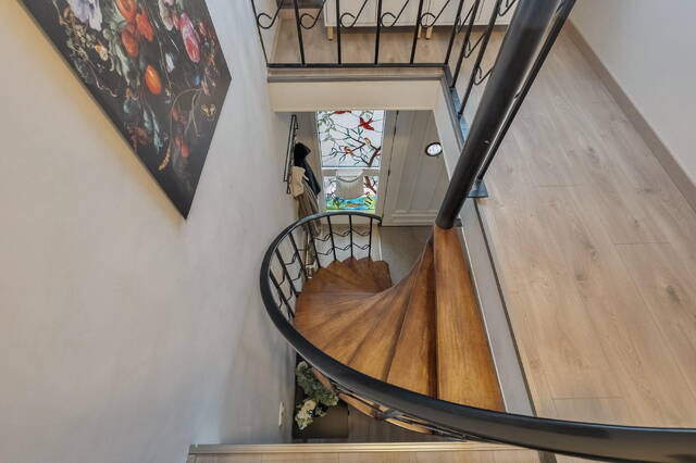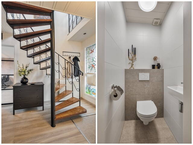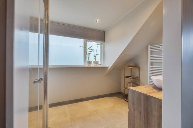 - Op de begane grond bevinden zich een werk-/slaapkamer en badkamer, waardoor gelijkvloers wonen hier moeiteloos mogelijk is;