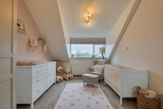 Ruime slaapkamer 3 (ca. 19 m2) die indien gewenst eenvoudig kan worden opgesplitst in twee volwaardige slaapkamers. Deze slaapkamer is afgewerkt met een laminaatvloer en glad gestucte wanden en plafond.