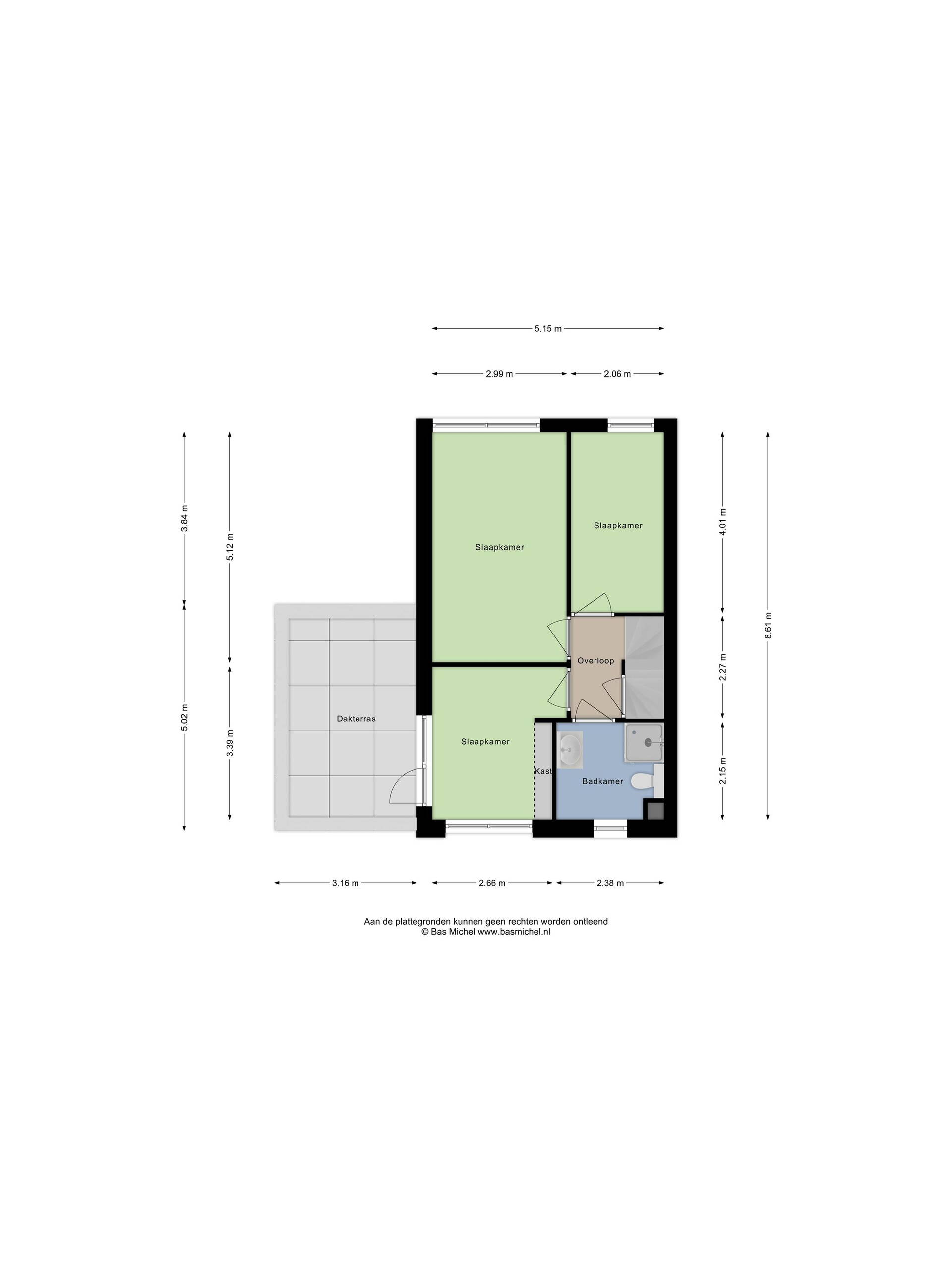 Terug in de hal komen we via de trap op de overloop van de eerste verdieping. Hier treffen we een drietal slaapkamers, allemaal prettig van formaat en flexibel in te delen als slaap-, werk- of hobbykamer. De hoofdslaapkamer is ca. 15, m2 groot en ligt aan de achterzijde. De tweede slaapkamer aan de achterzijde is ca. 8 m2 groot en de derde slaapkamer van 9 bevindt zich aan de voorzijde. Deze is heerlijk licht door de grote ramen en heeft toegang tot het dakterras! Een heerlijke extra buitenruimte waar je in alle rust kunt genieten van de zon, een kop koffie of een goed boek.