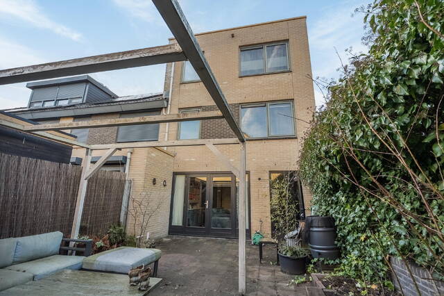 Aan de achterzijde loop je zo de achteruin in. De achtertuin is gelegen op het oosten en zuiden, waardoor je hier al vroeg van de zon kunt genieten. Achterin de tuin staat een vrijstaande houten berging en er is een praktische achterom aanwezig.