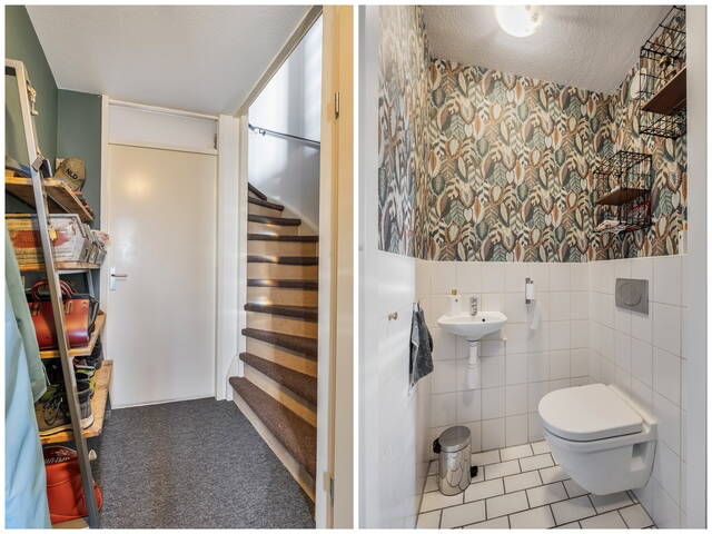Via de voortuin stap je de woning binnen in de hal met toegang tot het toilet en de woonkamer. Zodra je binnenkomt valt direct het licht op. Door de hoekligging en de grote raampartijen is de woonkamer heerlijk licht en ruimtelijk.