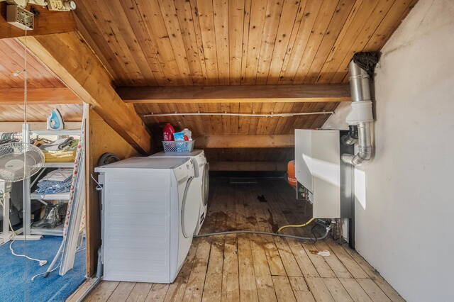 De voorzolder beschikt over veel bergruimte, een dakraam en de opstelplaats voor de HR C.V. combiketel (2013). Tevens zijn hier de aansluitingen voor wasmachine en droger aanwezig.
