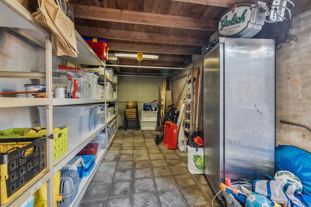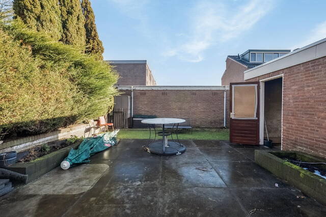 De achtertuin is gelegen op het oosten en biedt volop ruimte om te genieten van de ochtend- en middagzon. Vanuit de tuin is er toegang tot de garage/berging en tevens een achteruitgang. De stenen garage is voorzien van een garagedeur en elektra. Daarnaast zijn er al leidingen aanwezig voor het plaatsen van een radiator en een wasbak met warm en koud water.