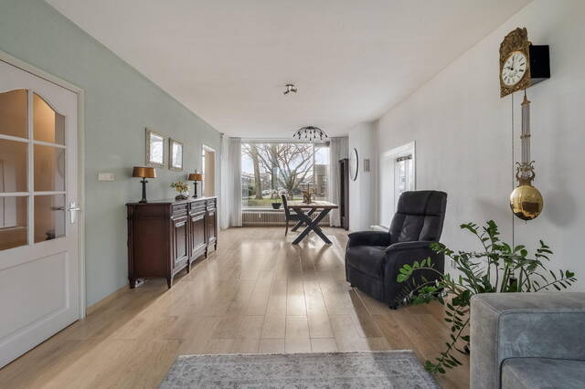Royale lichte doorzon woonkamer (ca. 37 m2) voorzien van een duurzame laminaatvloer. De grote raampartijen zorgen voor volop aangenaam daglicht. De woonkamer biedt voldoende ruimte voor een gezellige eethoek bij de keuken. De woonkamer is verder aan de achterzijde voorzien van elektrisch bedienbaar zonnescherm. Door middel van een balkondeur heeft u toegang tot het zonnige balkon.