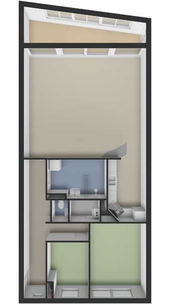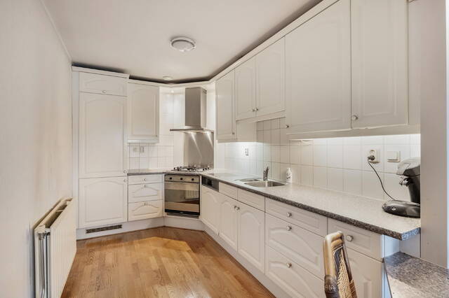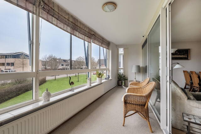 De royale en lichte woonkamer vormt het centrale leefgedeelte en staat in directe verbinding met de ruime serre. Dankzij de raampartijen over de volledige breedte en de gunstige ligging op het zonnige zuiden fungeert deze serre als een verlengstuk van de woonkamer. Hier geniet u vrijwel de hele dag van zonlicht en een vrij uitzicht over het speelveldje voor het complex. De open keuken, twee ruime slaapkamers en de comfortabele badkamer zorgen samen voor een complete en praktische indeling.