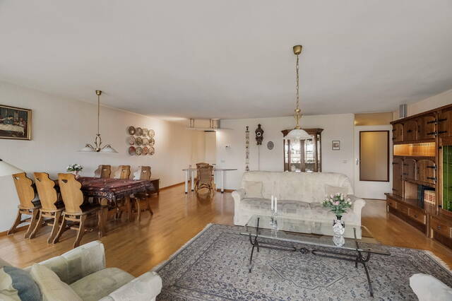 - Ruime woonkamer met schuifpui en parketvloer