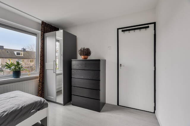 Op de eerste verdieping kom je op de overloop met toegang tot drie slaapkamers en de badkamer. Twee slaapkamers liggen aan de achterzijde van de woning, ideaal als kinderkamers of rustige werkplekken. De derde slaapkamer bevindt zich aan de voorzijde en is perfect als hoofdslaapkamer. De laminaatvloer loopt over de hele verdieping door en alle kamers zijn voorzien van convector radiatoren en strak gestucte wanden en plafonds.