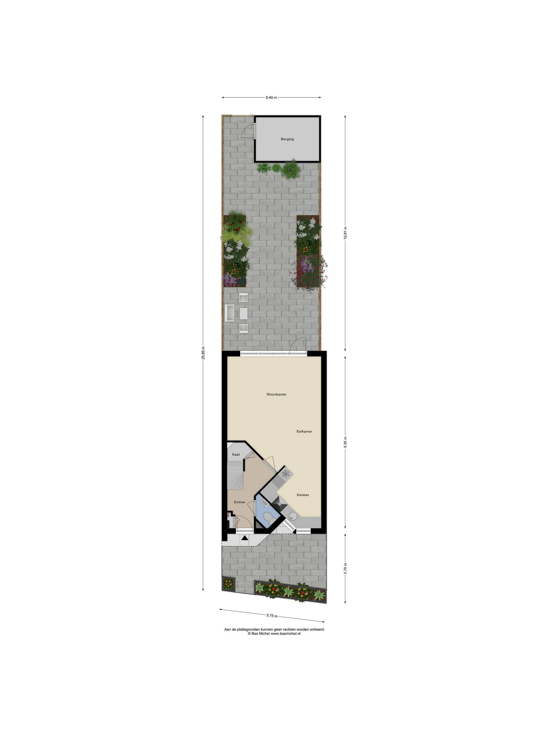 - Achtertuin op het zuiden met achterom