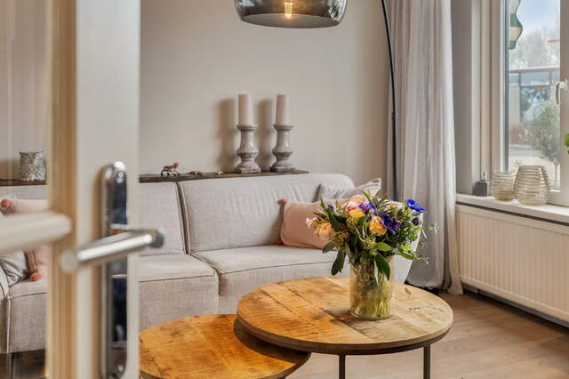 Je wordt al blij als je je geliefde Oranjewijk binnenrijdt, je bent weer thuis. Je parkeert je auto voor de deur en loopt via de voortuin naar de voordeur. Achter de voordeur stap je de entree binnen waar je je jas ophangt en langs de meterkast en toiletruimte richting de woonkamer loopt. Vanuit de hal kijk je al de woonkeuken in door het mooie grote raam, ontzettend sfeervol. Je loopt de woonkamer in en zet eerst even je tas op z’n plek. Wat is het toch een heerlijke woonverdieping. De voorzijde leent zich uitstekend voor de zithoek om lekker wat TV te kijken, een boek te lezen, gezellig met je gasten bij te kletsen, noem maar op. Je kijkt leuk weg over de Marijkesingel!