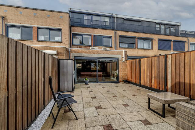 De onderhoudsvriendelijk aangelegde achtertuin op het oosten biedt volop ruimte voor een fijne lounge- of tuinset. Geniet hier van zonnige momenten én een heerlijke avond in rust. Achterin de tuin bevinden zich een houten berging en de achterom.