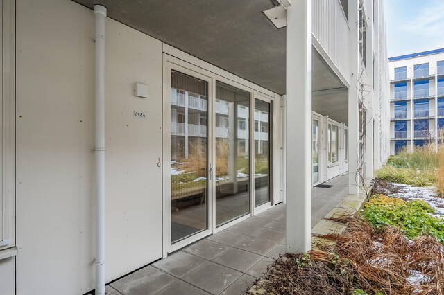 Het appartement is bereikbaar via de fraai aangelegde gezamenlijke binnentuin, rijk aan groen en keurig onderhouden door de VvE. Een rustige en prettige binnenkomst die direct een gevoel van ruimte en privacy geeft.