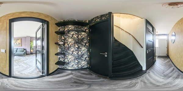 De trap naar de eerste verdieping is bereikbaar vanuit de hal en vormt een praktische en overzichtelijke verbinding met de slaapverdiepingen.