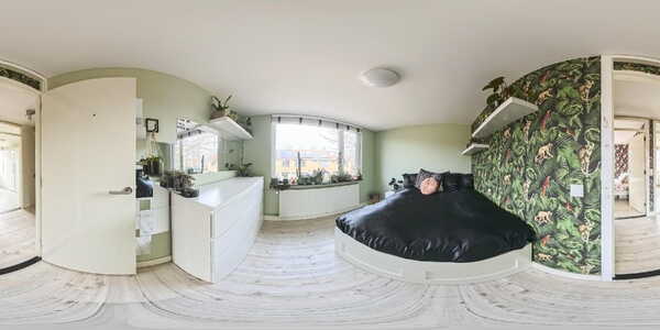 De slaapkamer op deze verdieping is opvallend ruim dankzij de dakkapel die over de volledige breedte van de woning is geplaatst. Hierdoor is er niet alleen veel extra ruimte ontstaan, maar ook een prettige hoeveelheid daglicht. Aan de voorzijde is daarnaast een Velux dakraam aanwezig, wat zorgt voor extra lichtinval en ventilatiemogelijkheden.